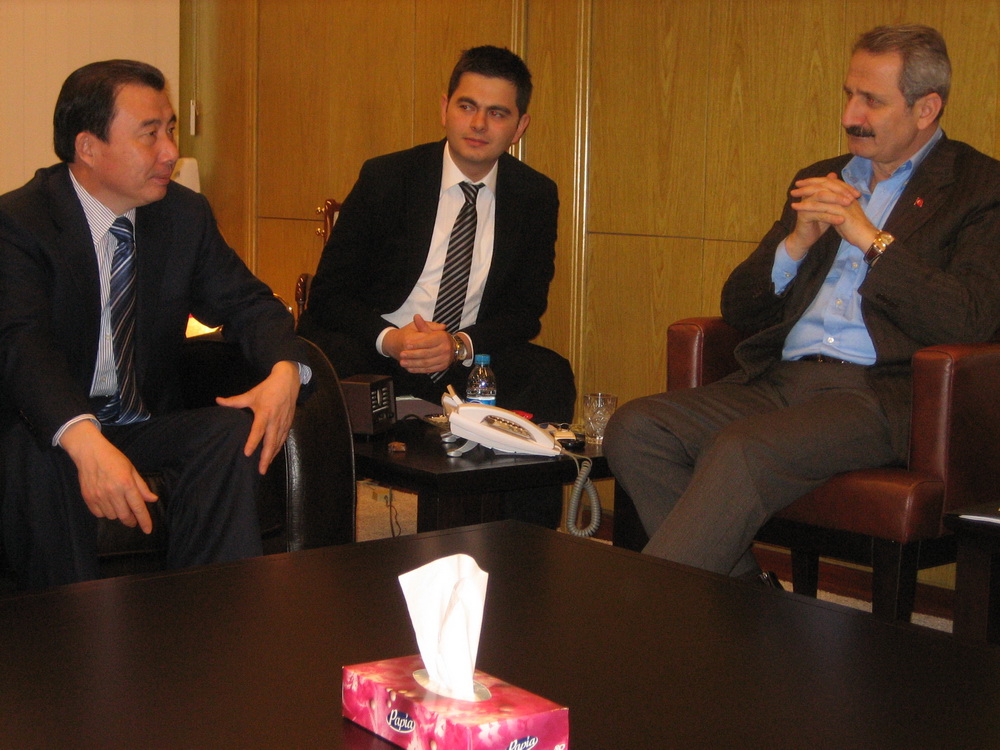 2010年1月23日下午,在中材節(jié)能余熱發(fā)電及水泥技術土耳其推介會閉幕之后,中材集團總經理劉志江在中材節(jié)能董事長張奇的陪同下到訪土耳其外貿部,拜訪了土耳其外貿部長Zafer CAGLAYAN(扎菲爾•恰拉揚)先生。