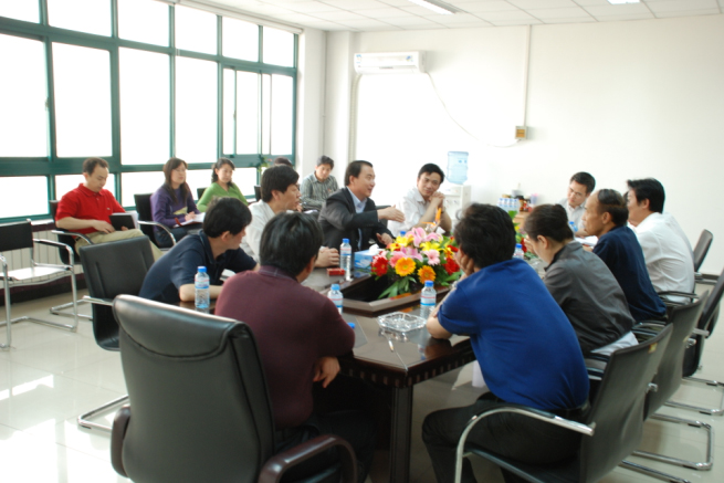 5月8日下午,中國中材集團公司劉志江副總經理、工程部劉建民部長等一行來天津市北辰科技園考察投資環境時,到中材節能發展有限公司檢查指導工作,與中材節能部分管理層成員以及部分中層人員進行了座談。中材節能發展有限公司董事長張奇、總經理何新平分別作了工作匯報。隨同劉總考察的還有中材集團天津礦山公司段志春總經理、南京礦山公司劉峰山總經理、兗州礦山公司孔繁運總經理、西安工程公司朱發良總經理等兄弟單位領導。