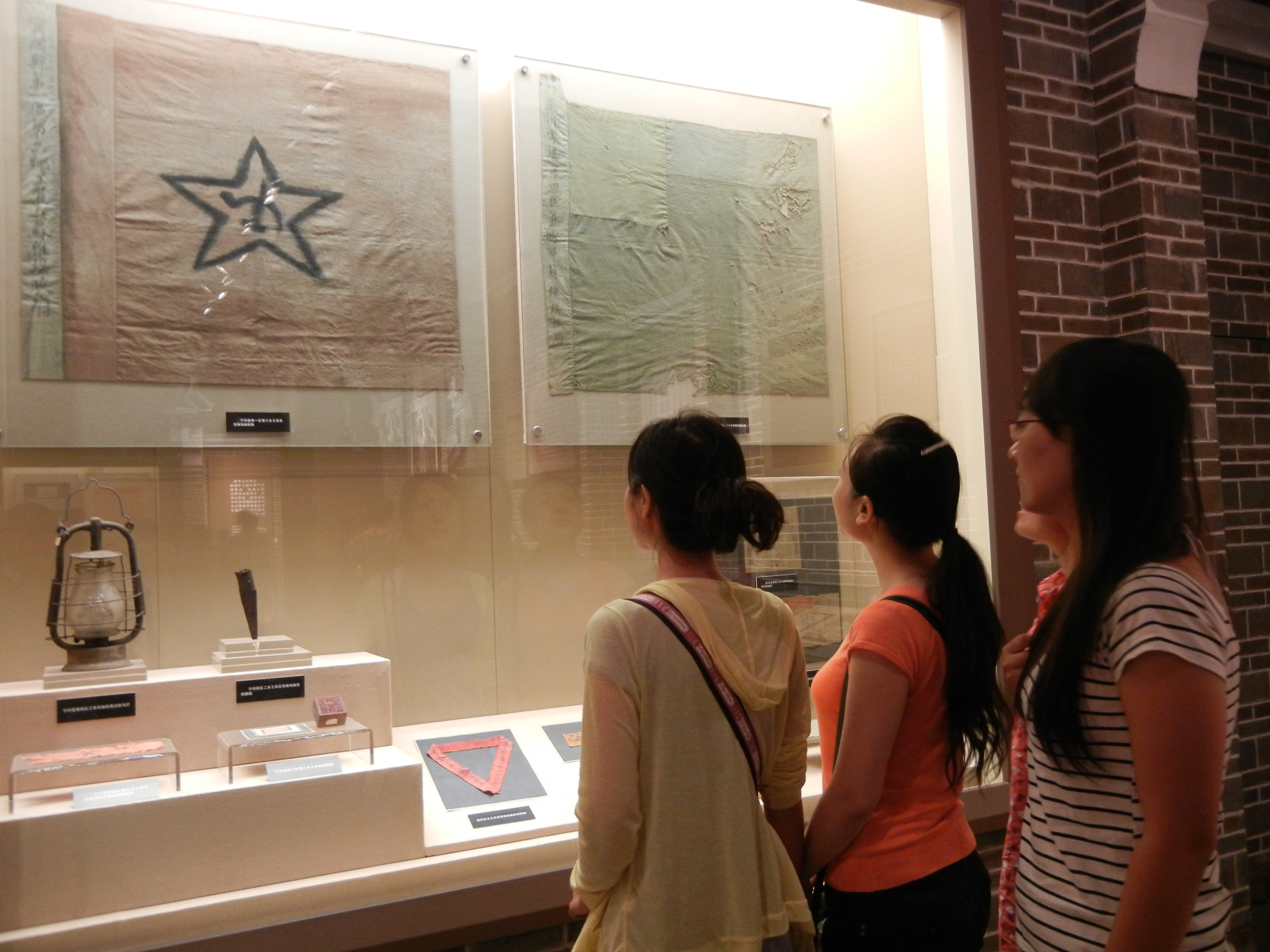 在革命博物館的展品前駐足觀看