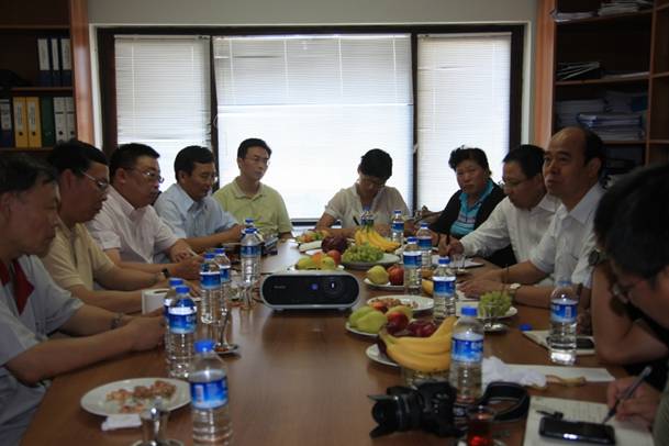 2011年8月27日上午,由工信部巡視員賈銀松、調(diào)研員高秀英女士及中辦秘書局領(lǐng)導(dǎo)共同組成的“走出去” 戰(zhàn)略實(shí)施考察團(tuán)一行在中材集團(tuán)副總于國(guó)波、中材集團(tuán)外事辦副主任袁東及中材節(jié)能股份有限公司(以下簡(jiǎn)稱“公司”)總裁胡也明、副總裁魏文華、市場(chǎng)部部長(zhǎng)王毅陪同下,視察了公司承建的土耳其AKCANSA(簡(jiǎn)稱“CNK”)水泥公司余熱發(fā)電項(xiàng)目,并對(duì)現(xiàn)場(chǎng)人員進(jìn)行親切慰問(wèn)。