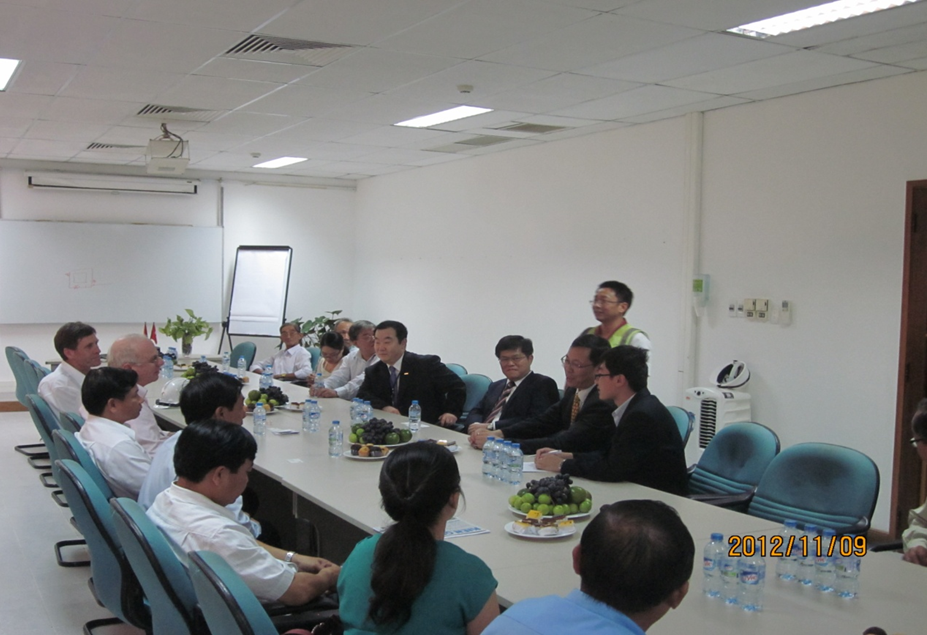 中國駐越南胡志明市總領事翟雷鳴先生在參加慶典期間,還特地到項目部駐地慰問了余熱發電項目部工作人員,并一起參觀了項目現場,聽取了項目進展情況匯報。翟雷鳴總領事介紹了中越兩國友好關系以及越南經濟發展的總體情況,他說,越南國內市場潛力很大,尤其在節能減排方面,希望中材集團及所屬企業加大在越南的發展力度,與越南的實力企業保持長期合作,在越南能源等多個領域占有一席之地,為中國企業樹立一個合作樣板。